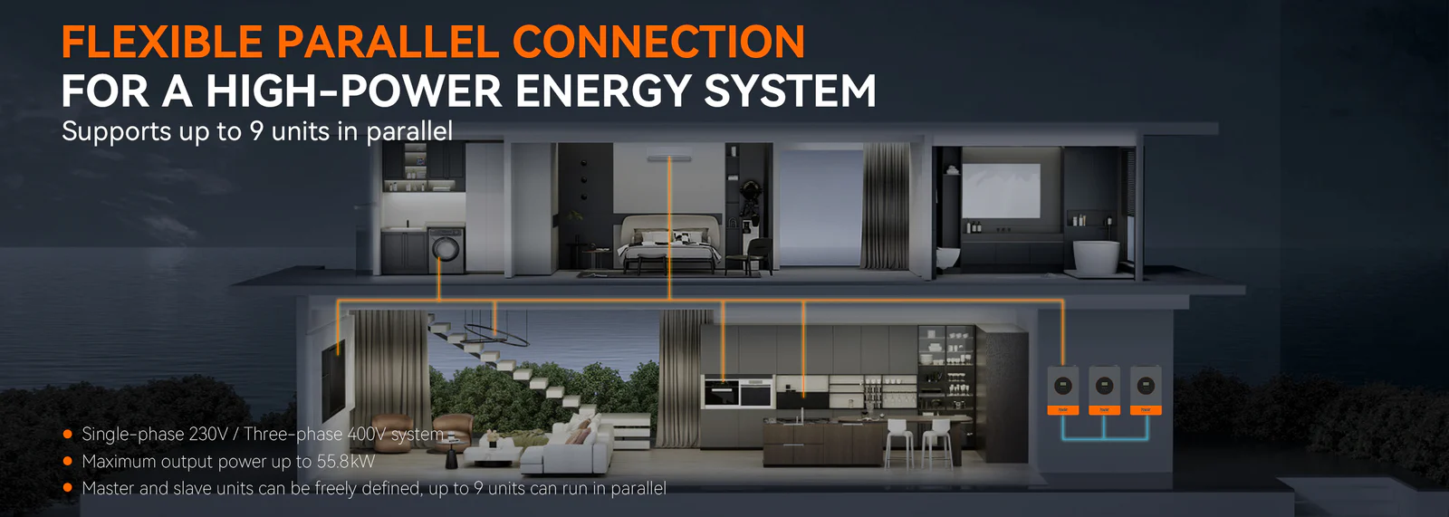 | Phase | Single Phase, Three Phase (in Parallel Connection) |